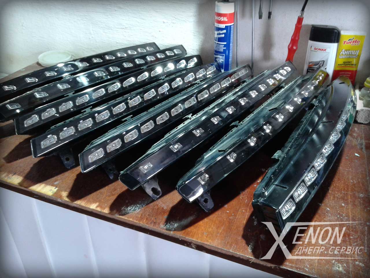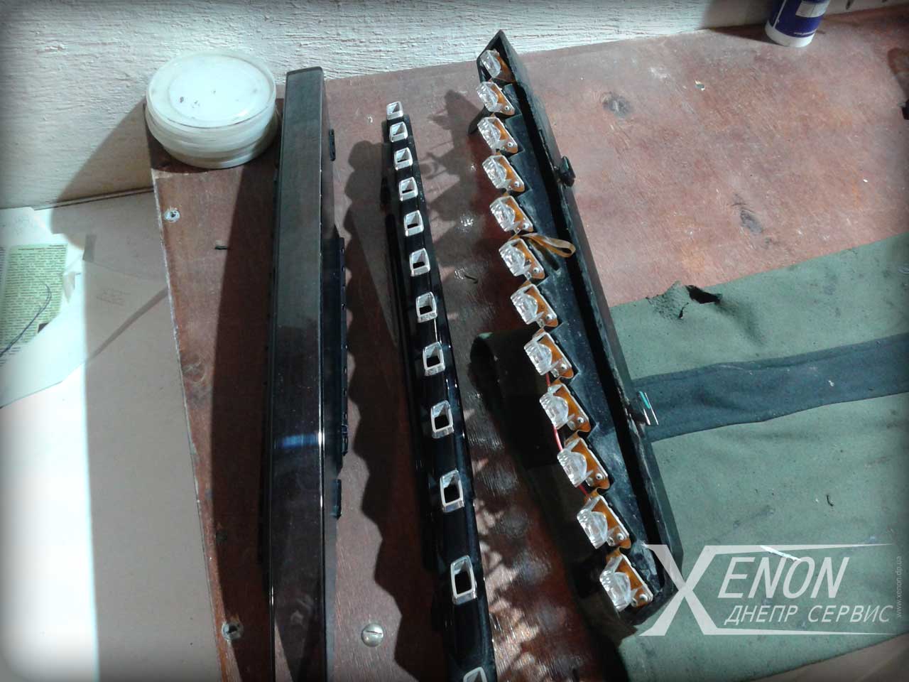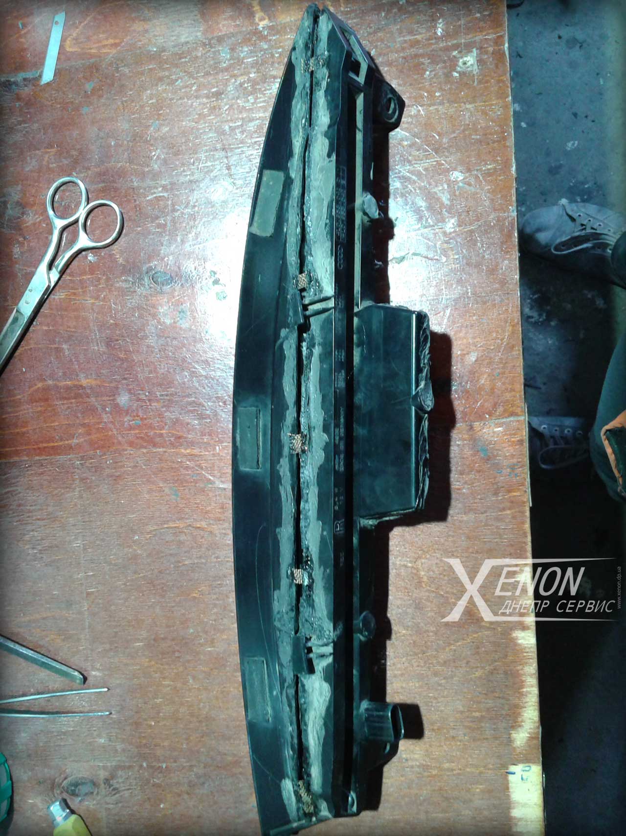 Здравствуйте! Небольшой фотоотчёт про ремонт светодиодных поворотников на Audi Q7. В данной статье разные фотографии с разных ремонтов. На фото ниже пример аккуратно распиленного поворотника.