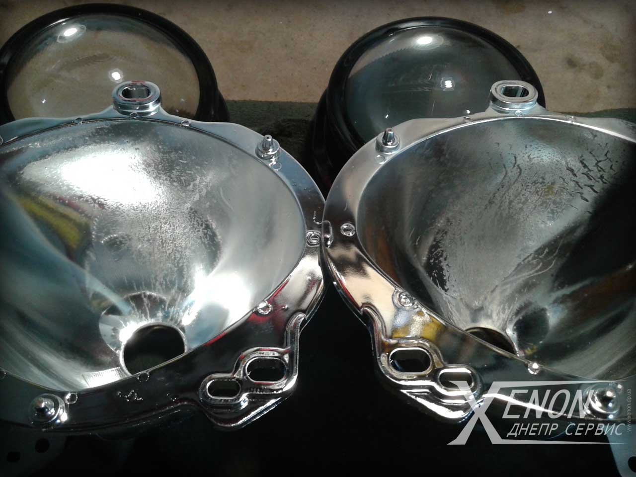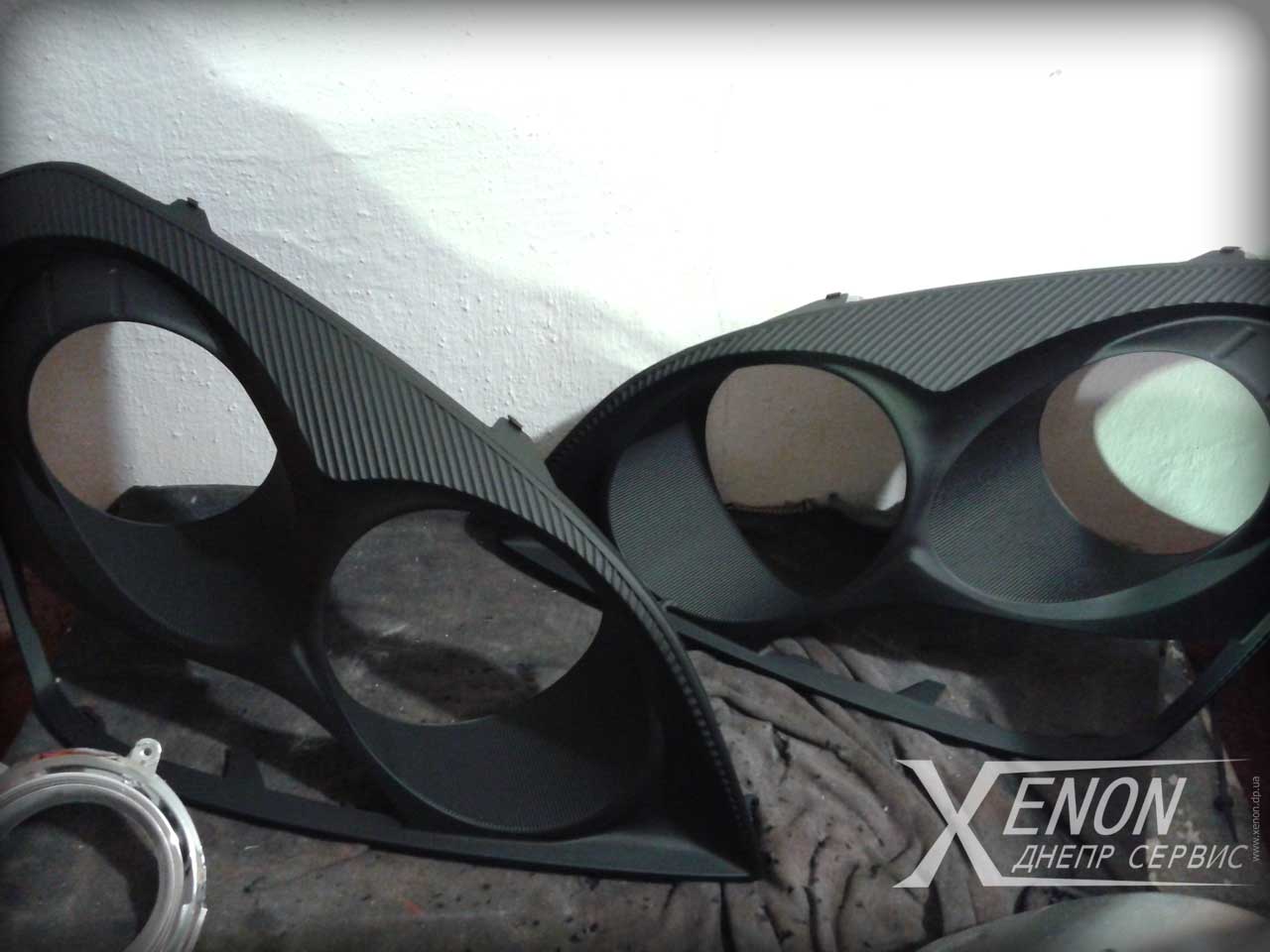 На данном KIA Magentis необходимо провести комплекс работ, а именно: установка биксеноновых линз, полировка и бронирование фар снаружи, окраска масок в чёрный цвет, установка гибких дневных ходовых огней. Хром снимается крайне тяжело!