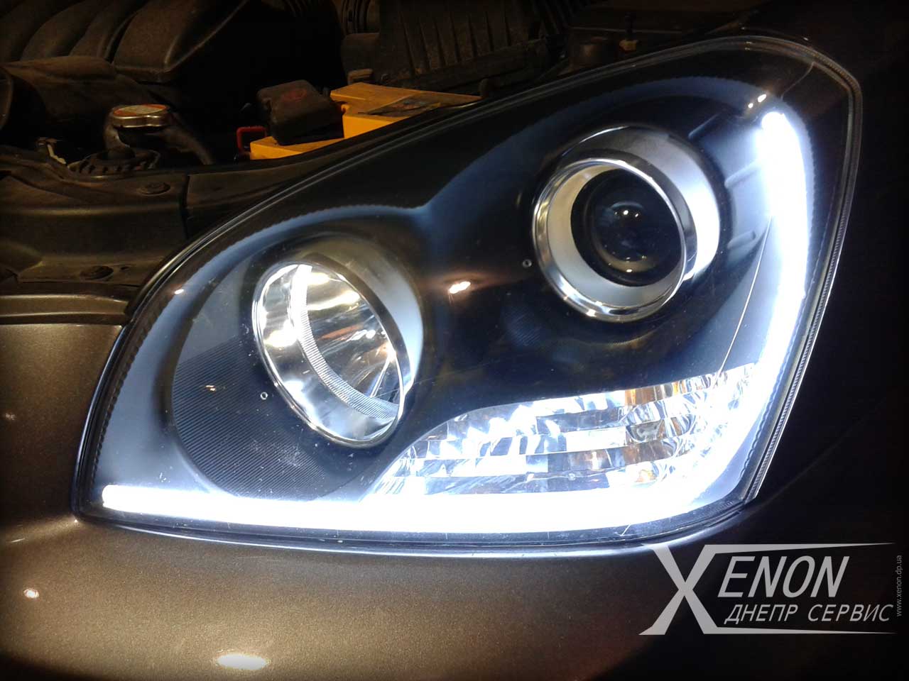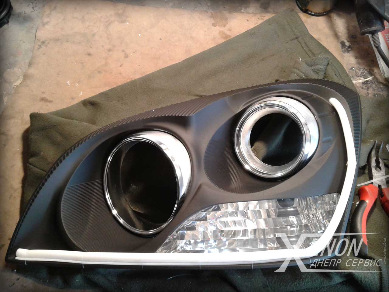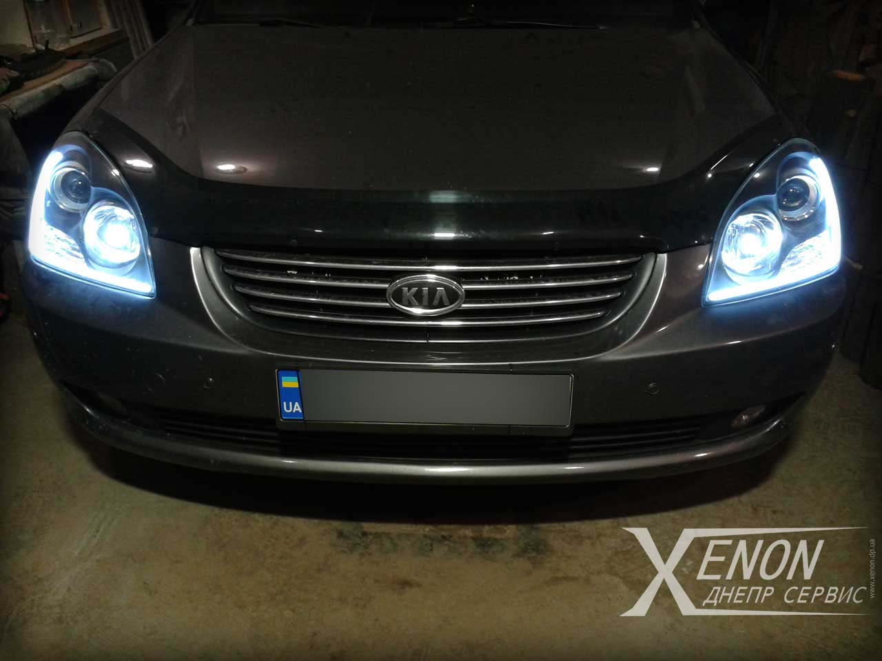 KIA Magentis установка биксеноновых линз и гибких дневных ходовых огней DRL